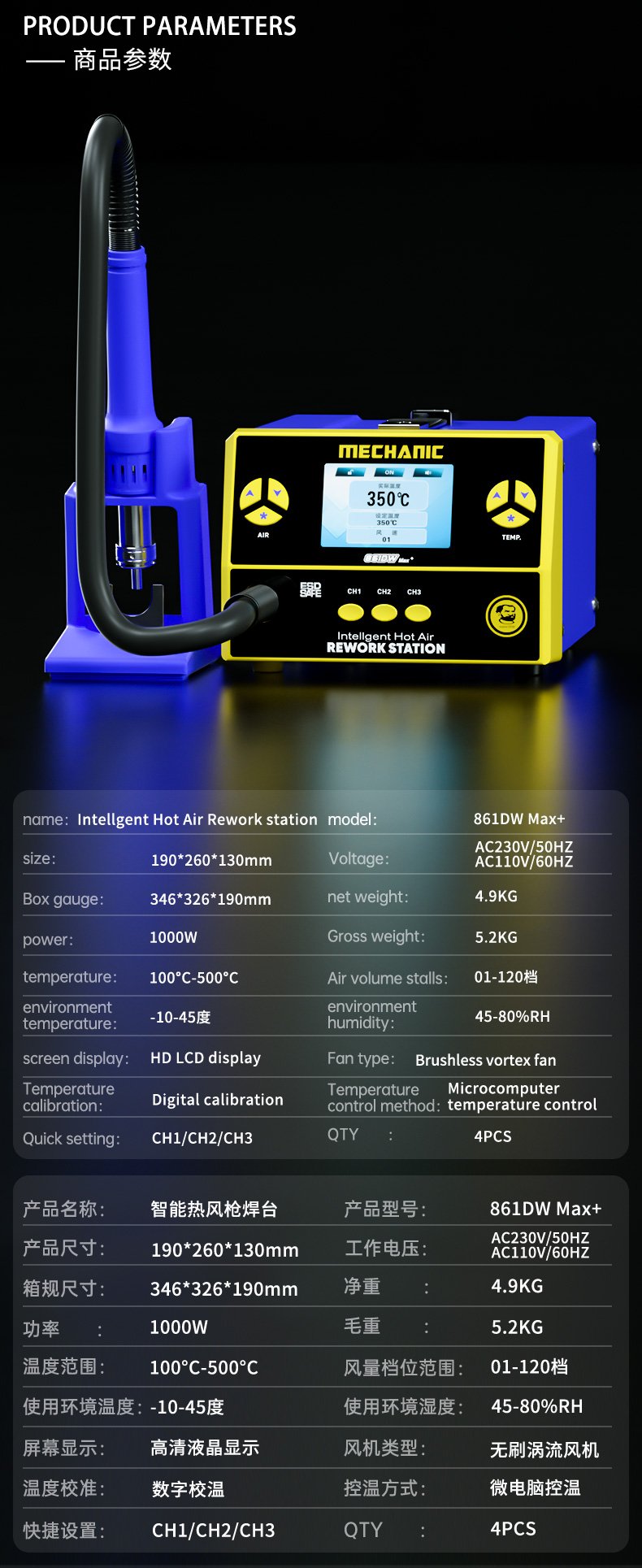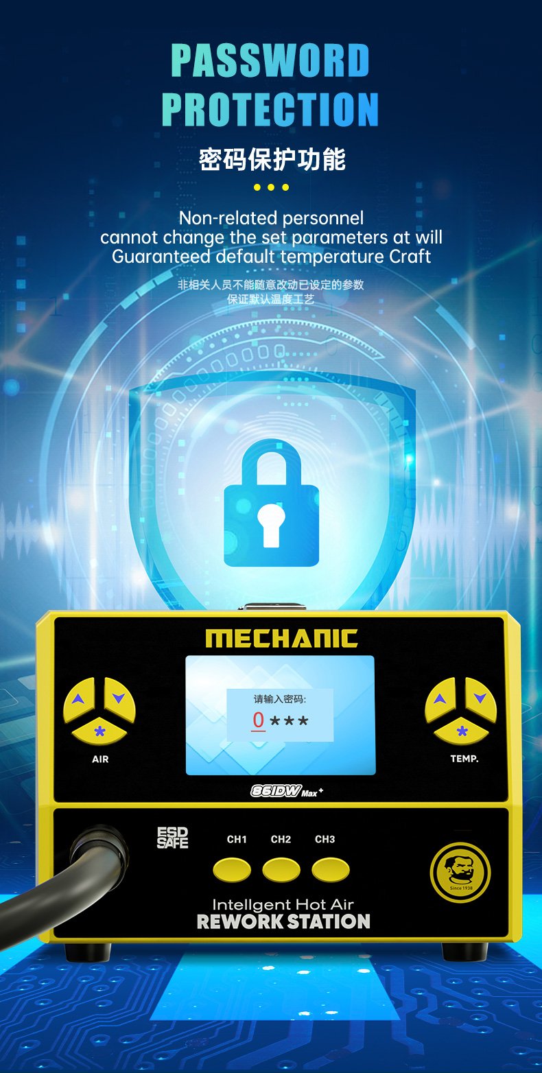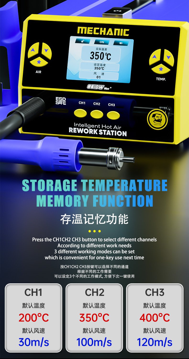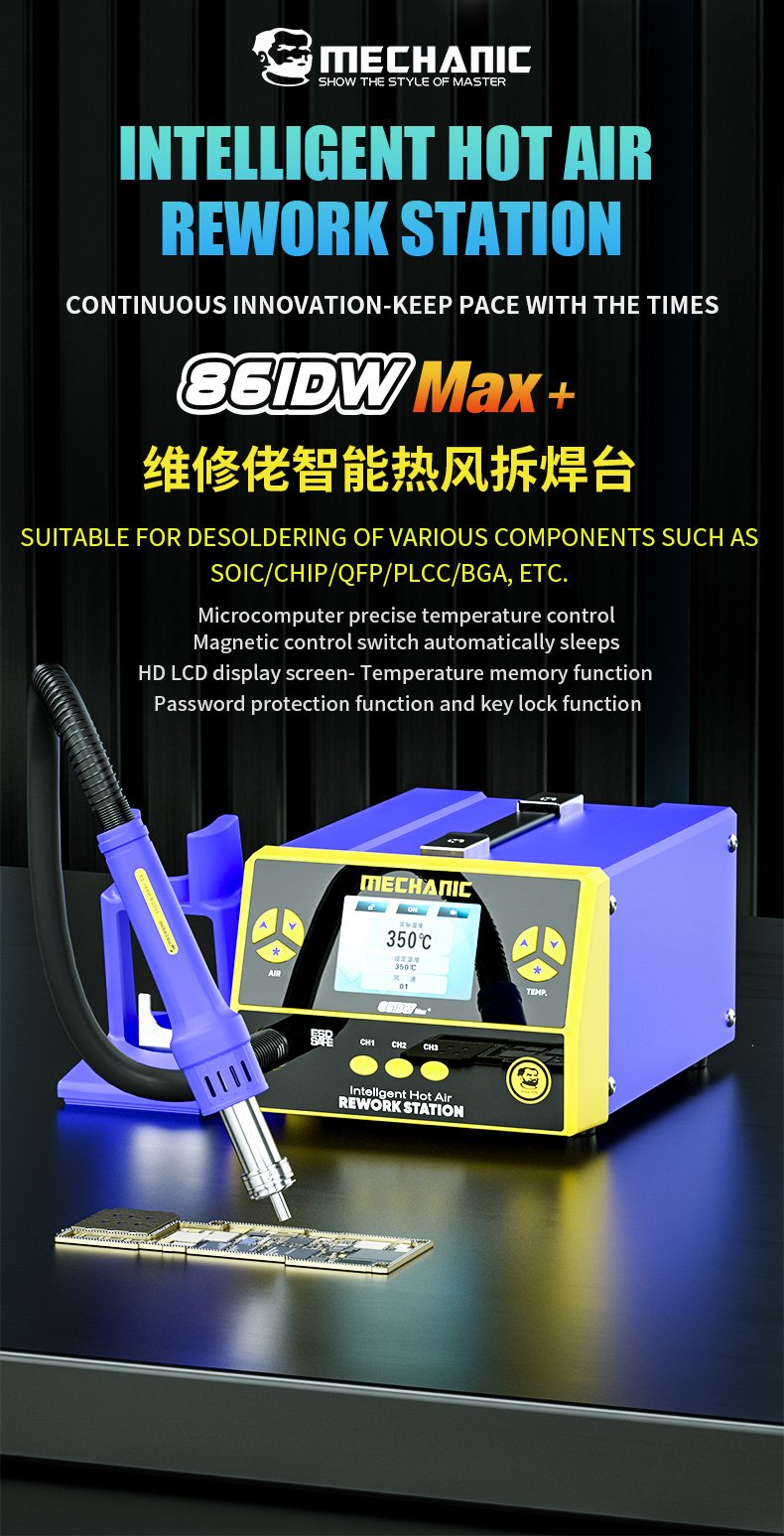 MECHANIC 861DW Max — Station de dessoudage à air chaud sans plomb, 1000 W, à affichage numérique et température réglable