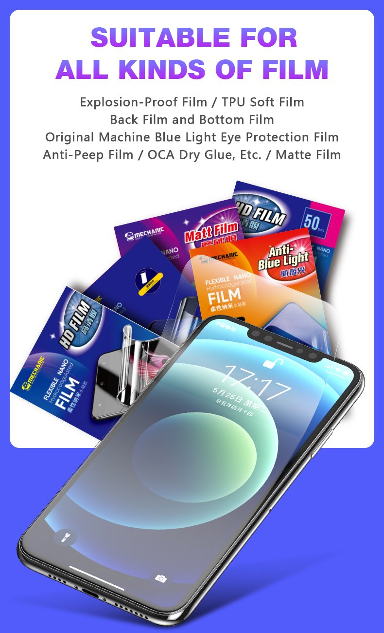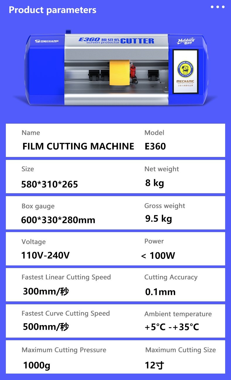 Les machines de découpe de film intelligentes MECHANIC E360Max offrent une découpe précise avec une exactitude de 0,1 mm, prenant en charge la découpe illimitée de films pour toutes les marques.