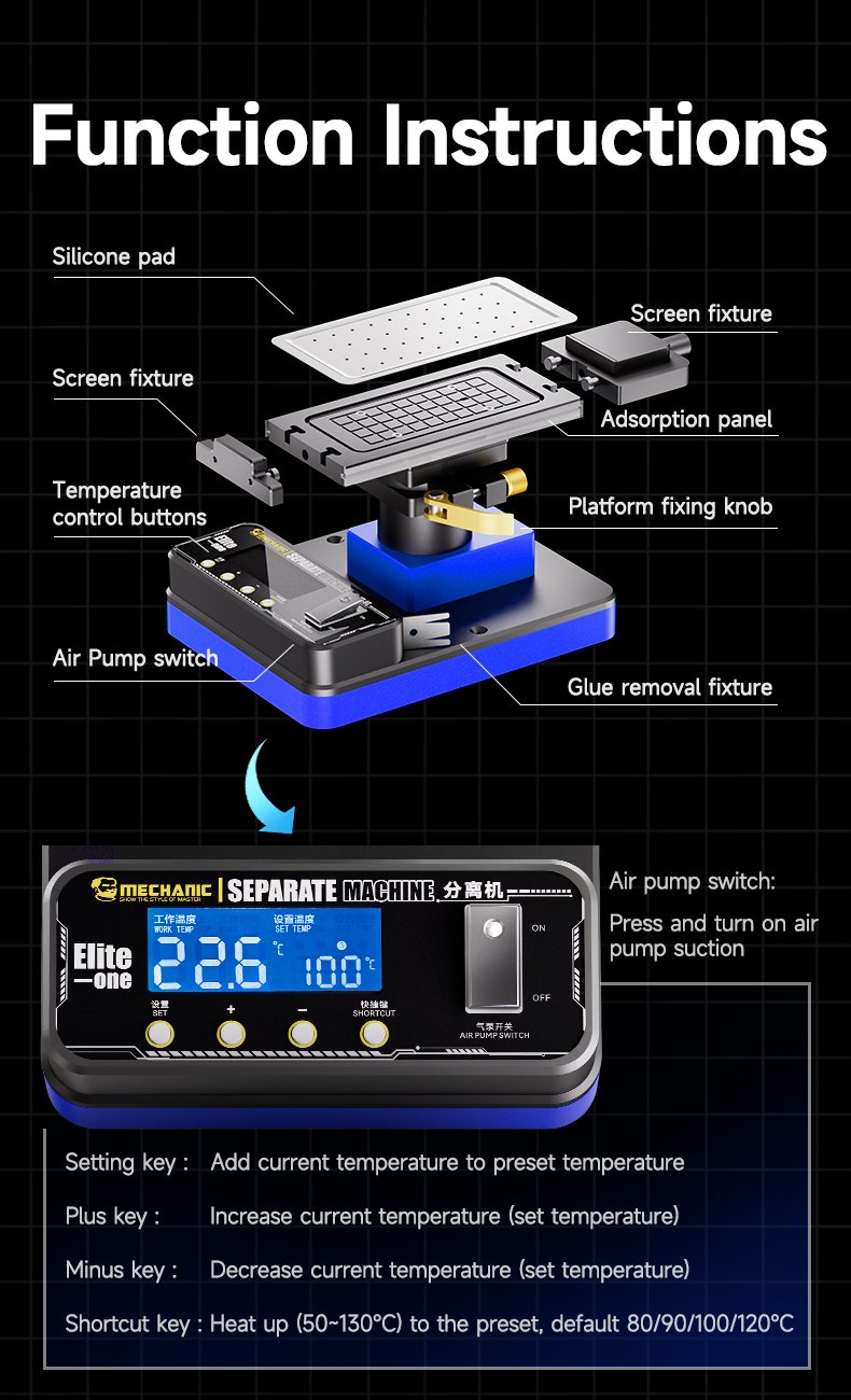 MECHANIC Elite One — Machine séparatrice d’écran LCD de téléphone à rotation 360°