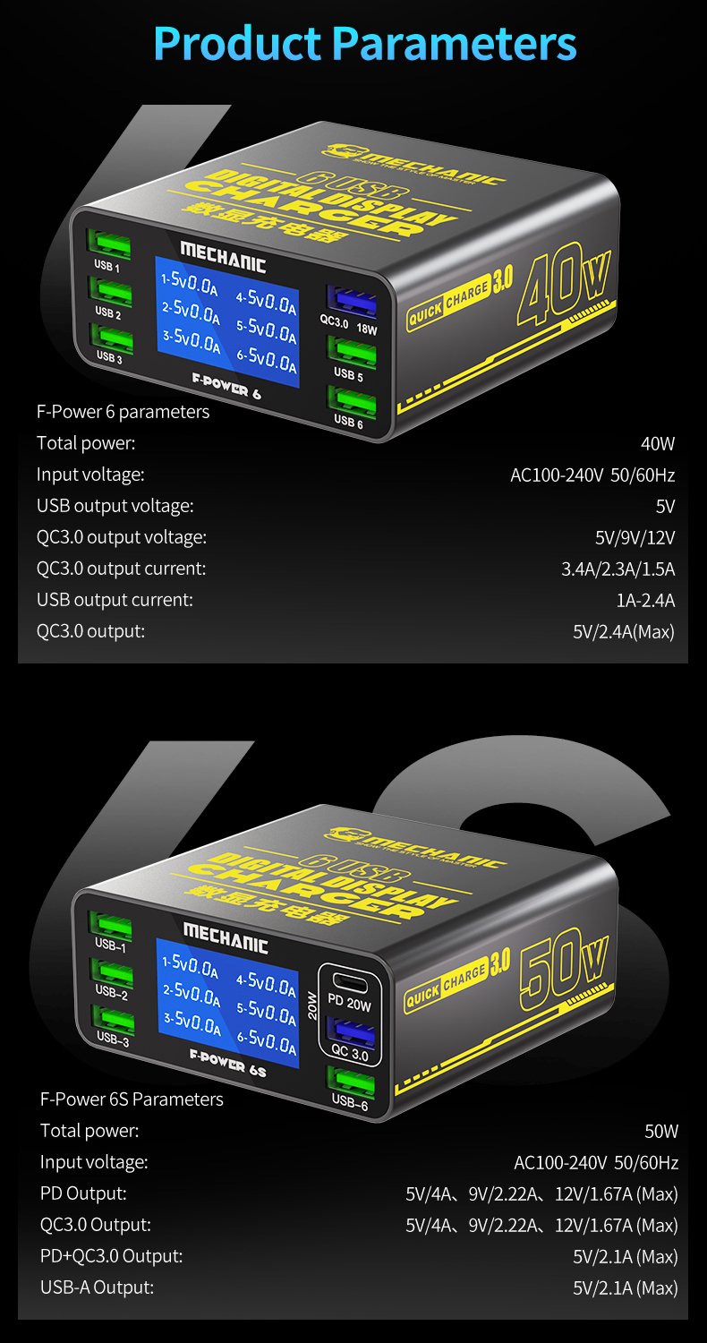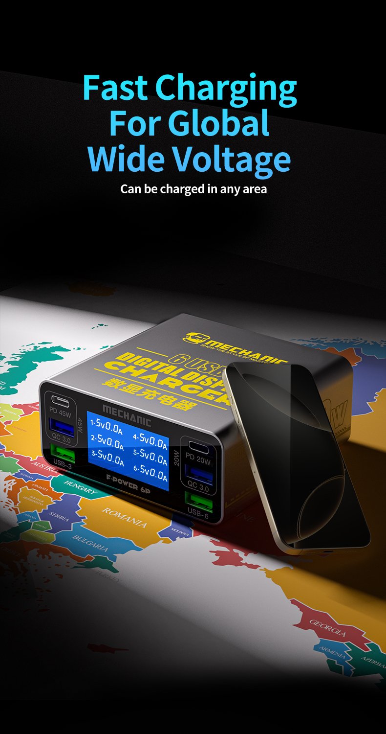 MECHANIC F-Power 6/6s – Station de Charge Rapide avec 9 Protections pour une Charge Plus Sûre et Compatible Large Tension
