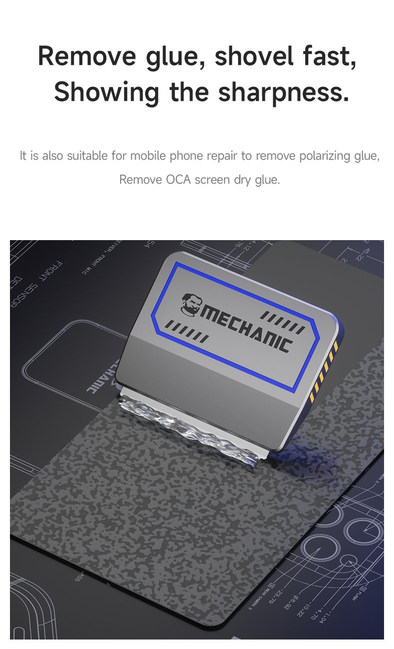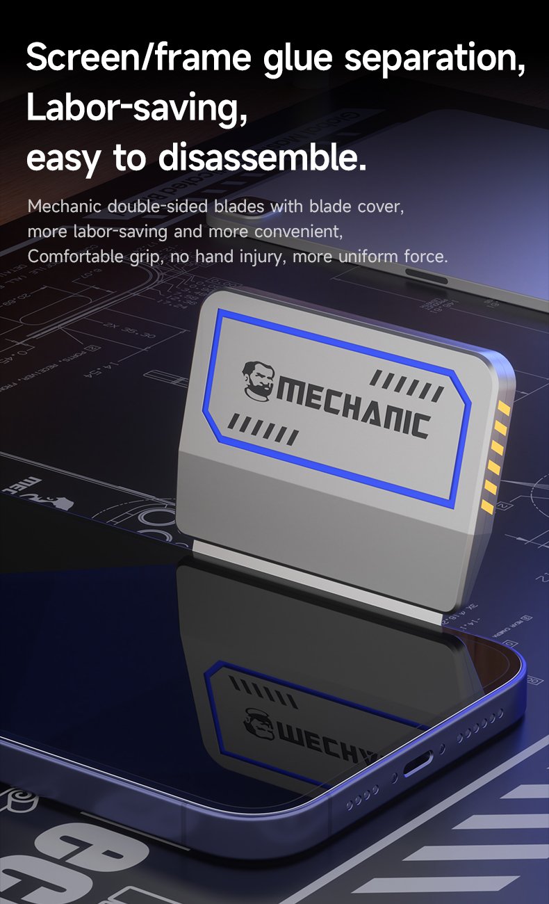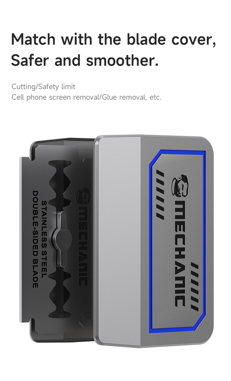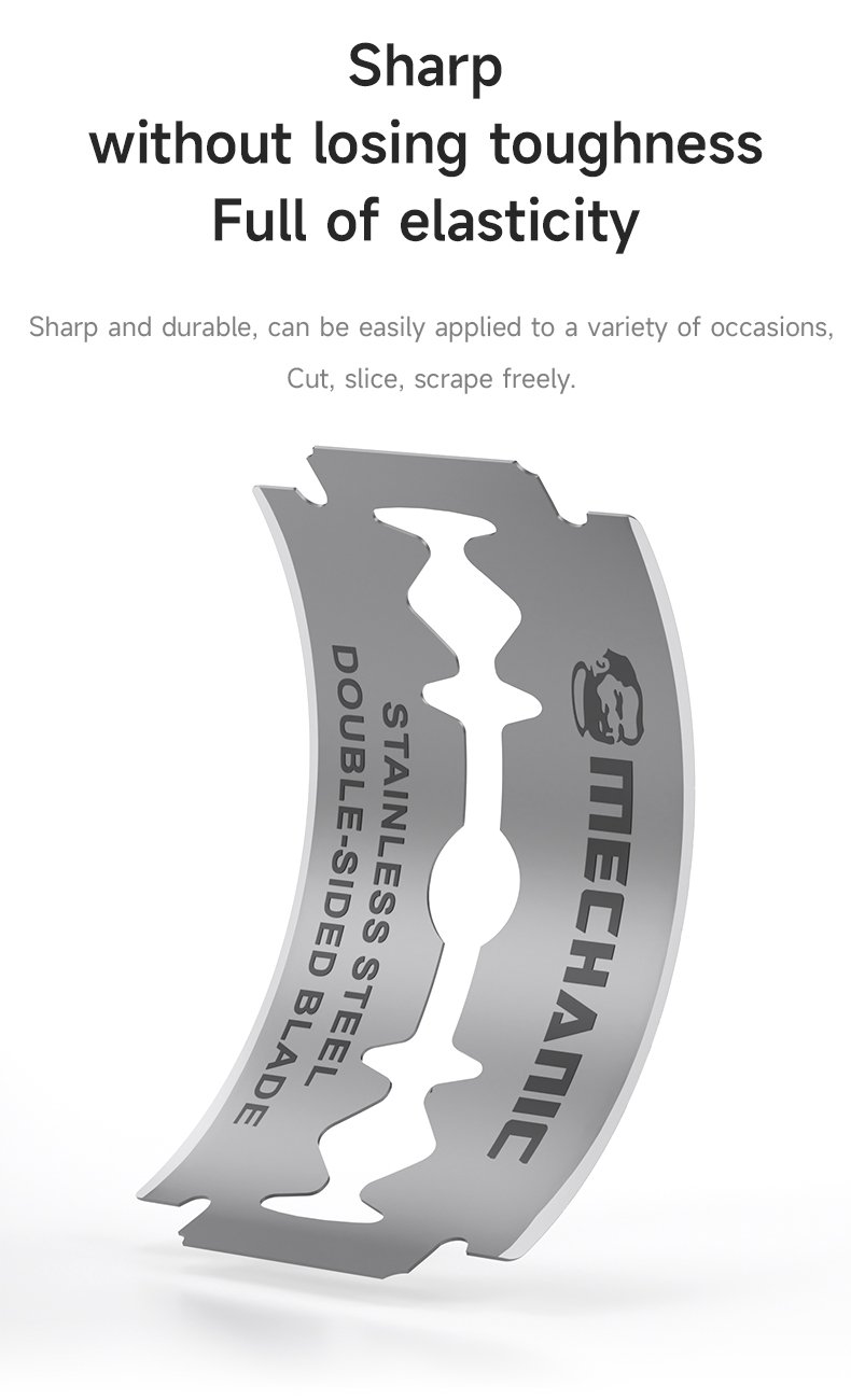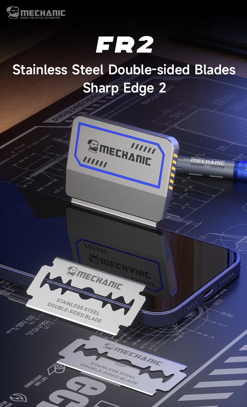Lames double face en acier inoxydable Mechanic FR2, idéales pour le nettoyage et le retrait des résidus de colle.