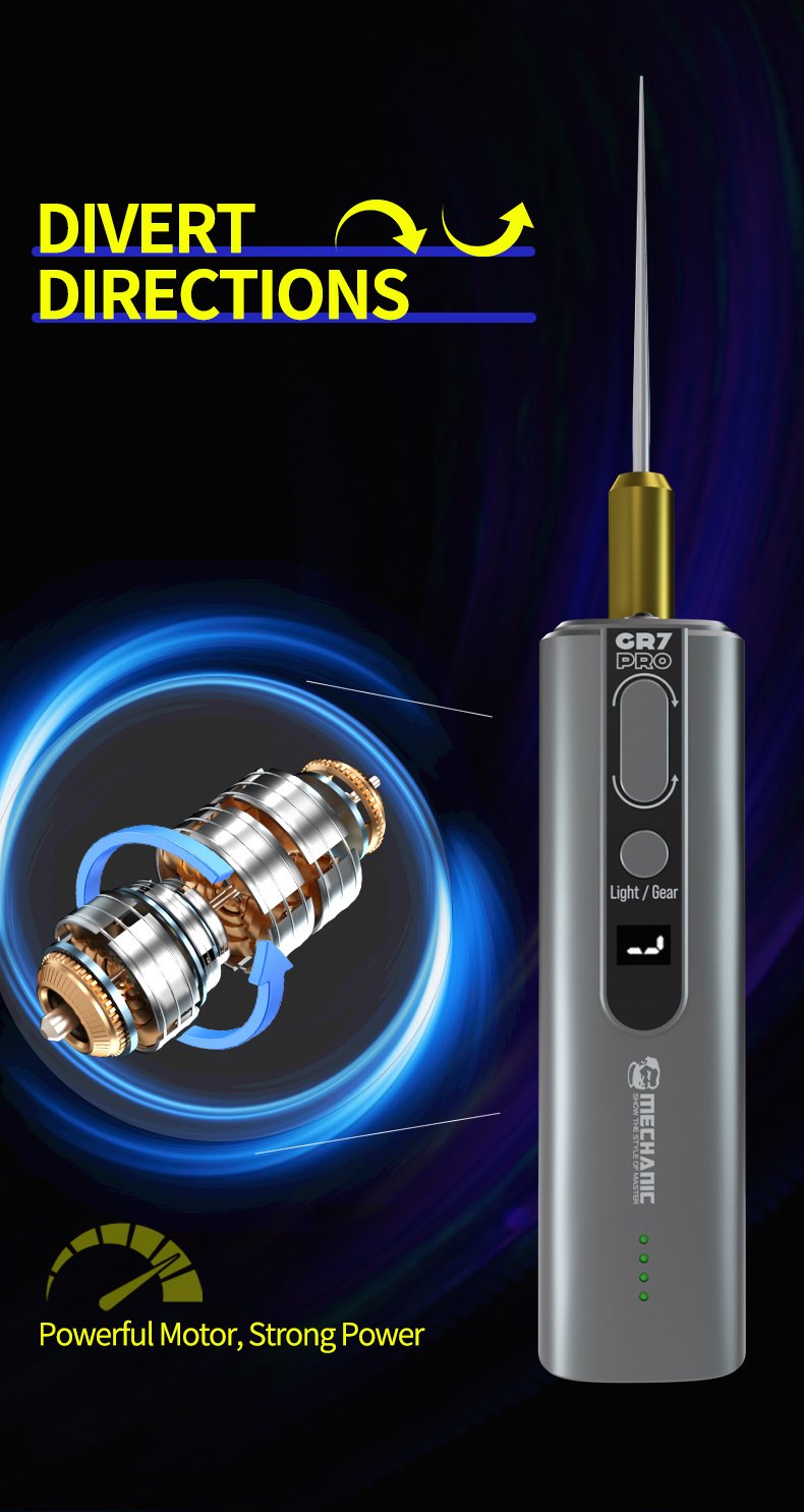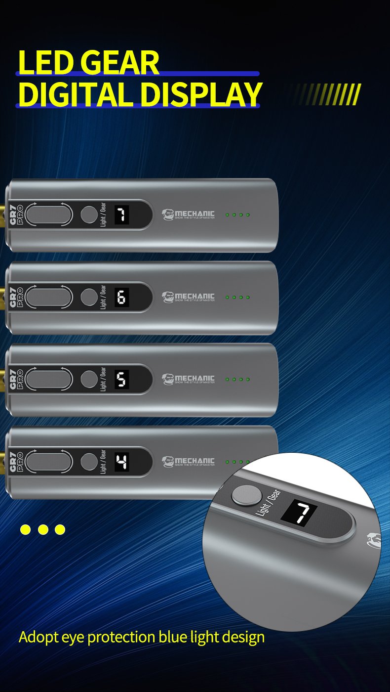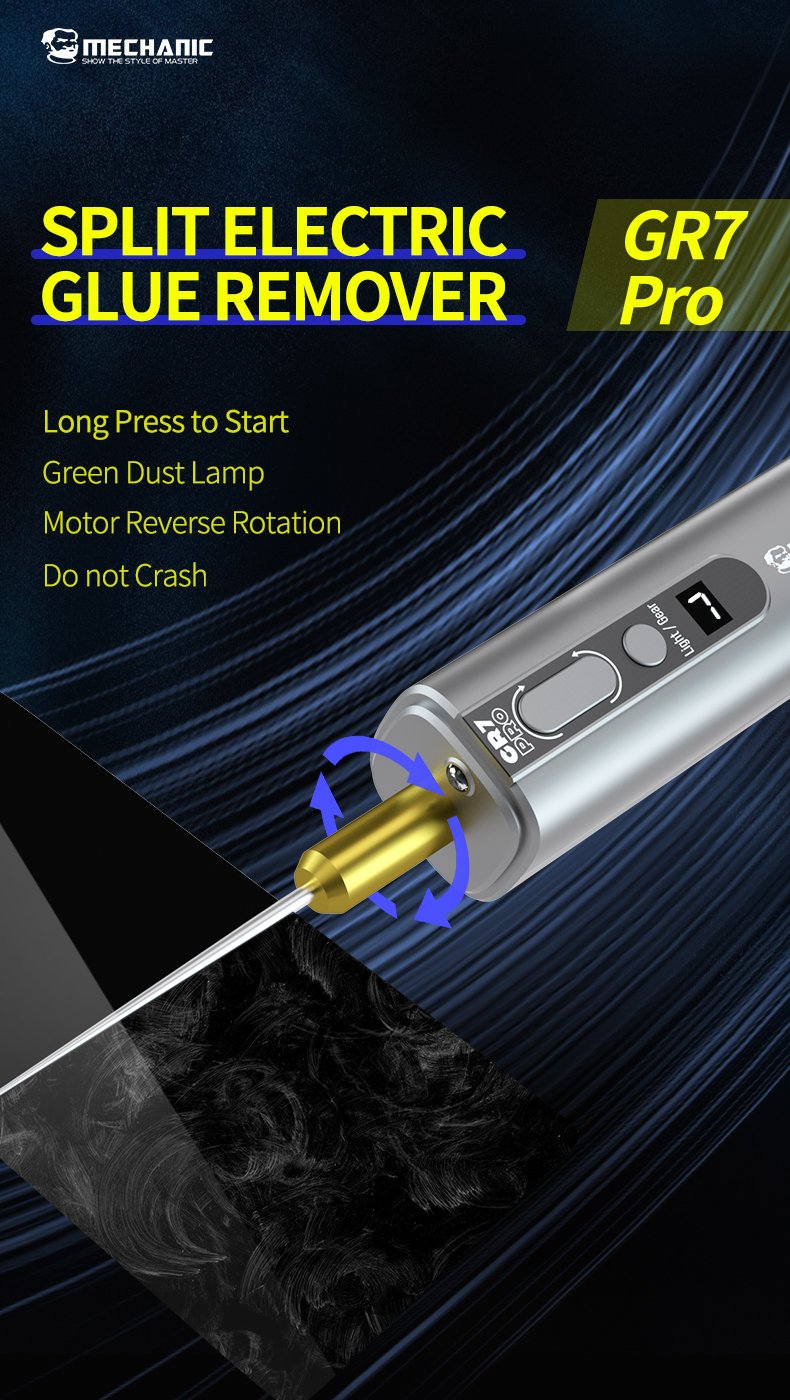 MECHANIC GR7 Pro — Applicateur de ruban adhésif avec détacheur électrique 7 vitesses, batterie 2000 mAh, lumière LED intégrée, design à compartiments